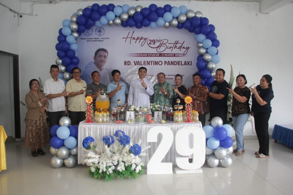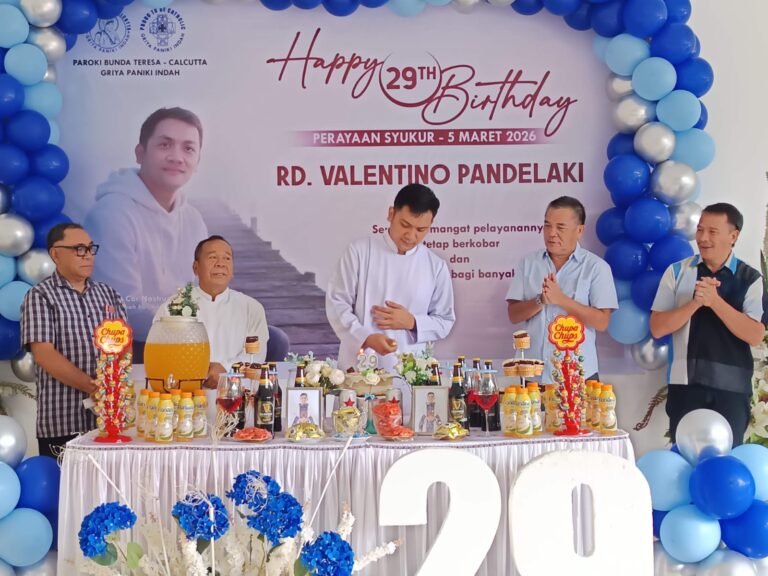 PASTOR Neomis Paroki Bunda Teresa Calcutta Griya Paniki Indah, Pastor Valentino Pandelaki Pr, merayakan ulang tahun ke 29, 5 Maret 2026 yang dirayakan dalam misa syukur bersama umat.